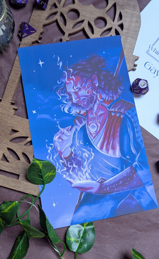 Cette illustration représente Gale, le magicien érudit de Baldur’s Gate 3, incarnant la maîtrise de la magie et une élégance empreinte de sagesse. Porté par son savoir arcanique et son charisme discret, il reflète à la fois puissance, mystère et humanité. Il incarne le rôle du Sorcier.