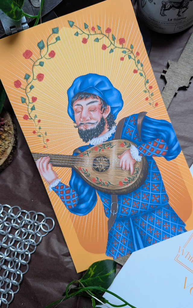Volo se révèle ici dans toute sa personnalité théâtrale et inimitable. Barde passionné et conteur infatigable, il joue son luth avec l’assurance de celui qui se sait au centre de l’histoire, même lorsque la réalité le contredit... Il représente le personnage du Barde.